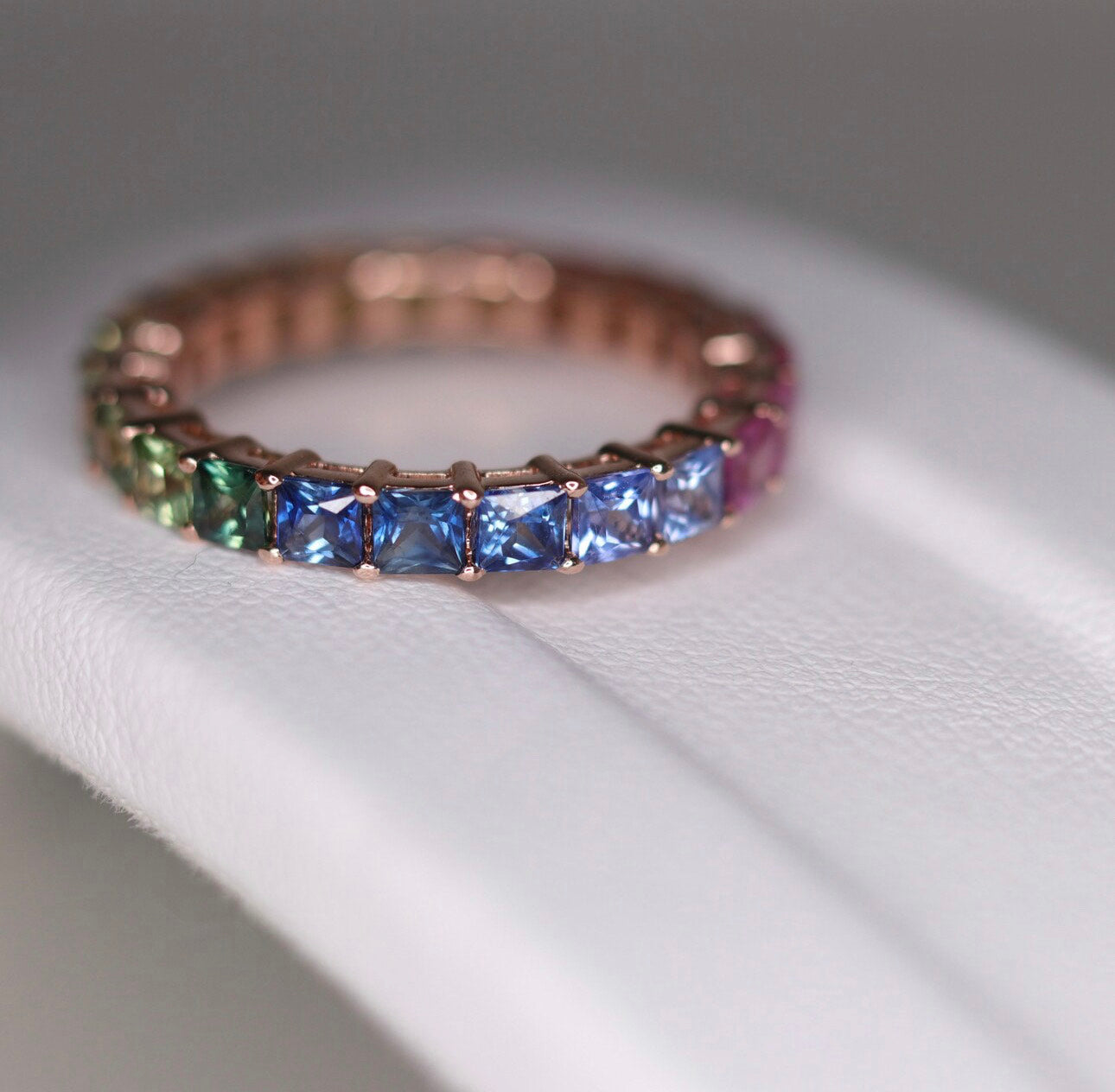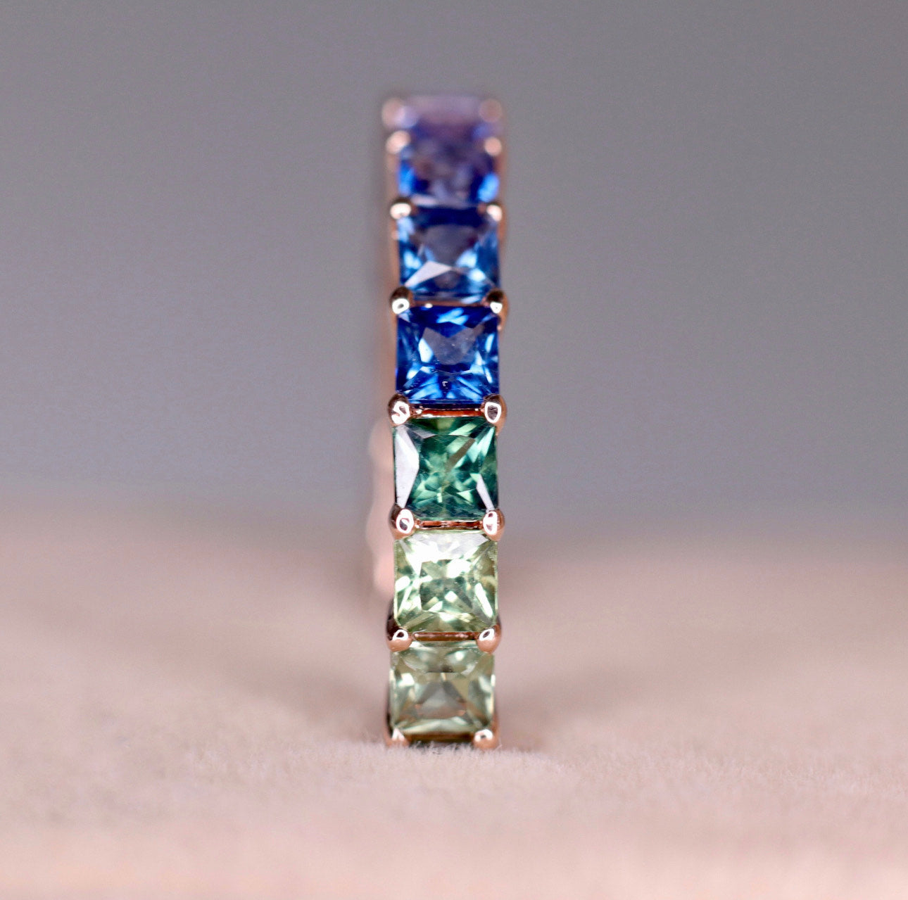 Eternity band with original natural Rainbow Sapphire in solid gold