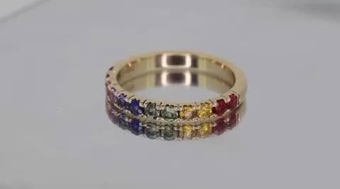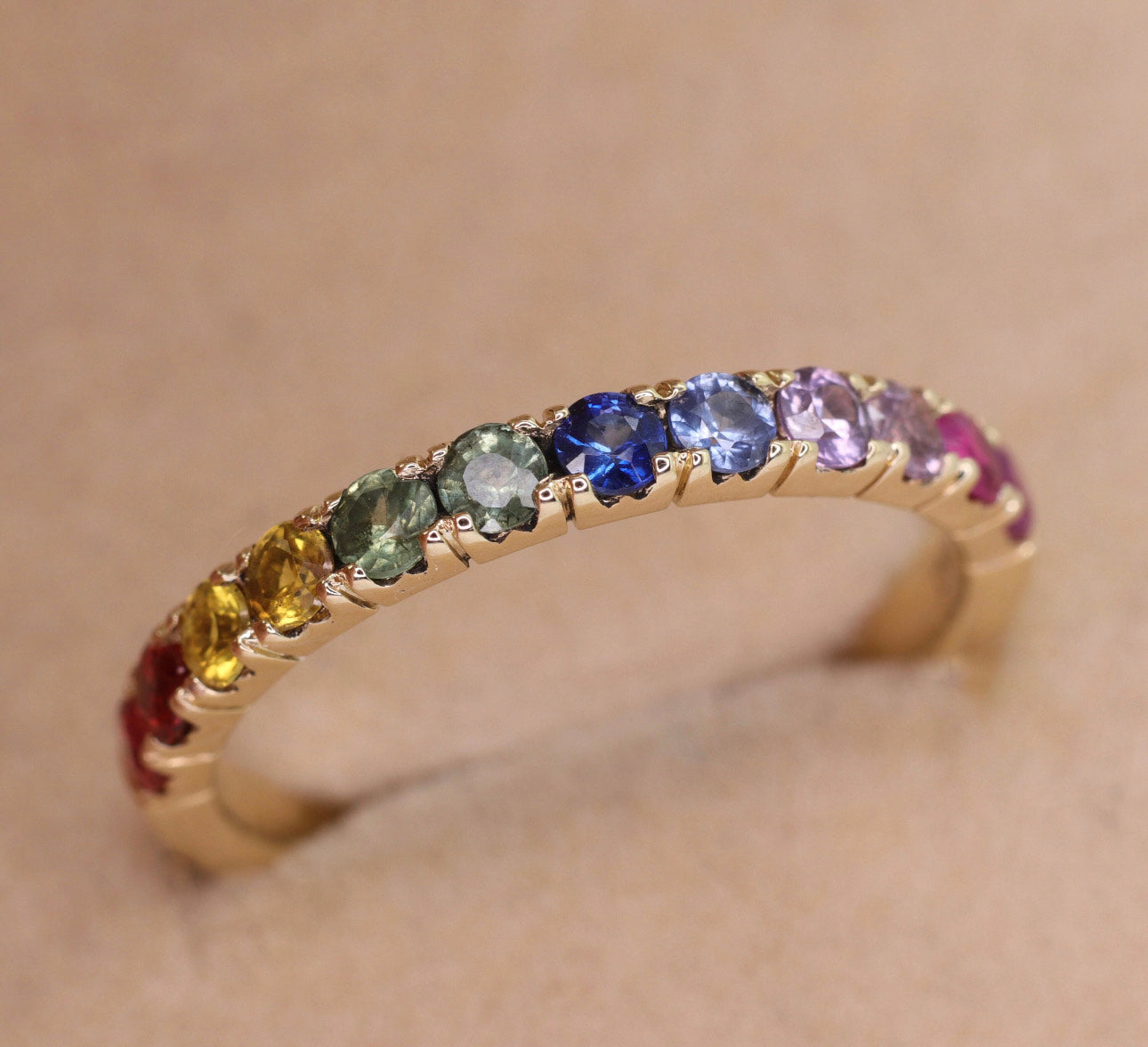 Ring with original rainbow sapphire ~Solid Gold Eternity Band