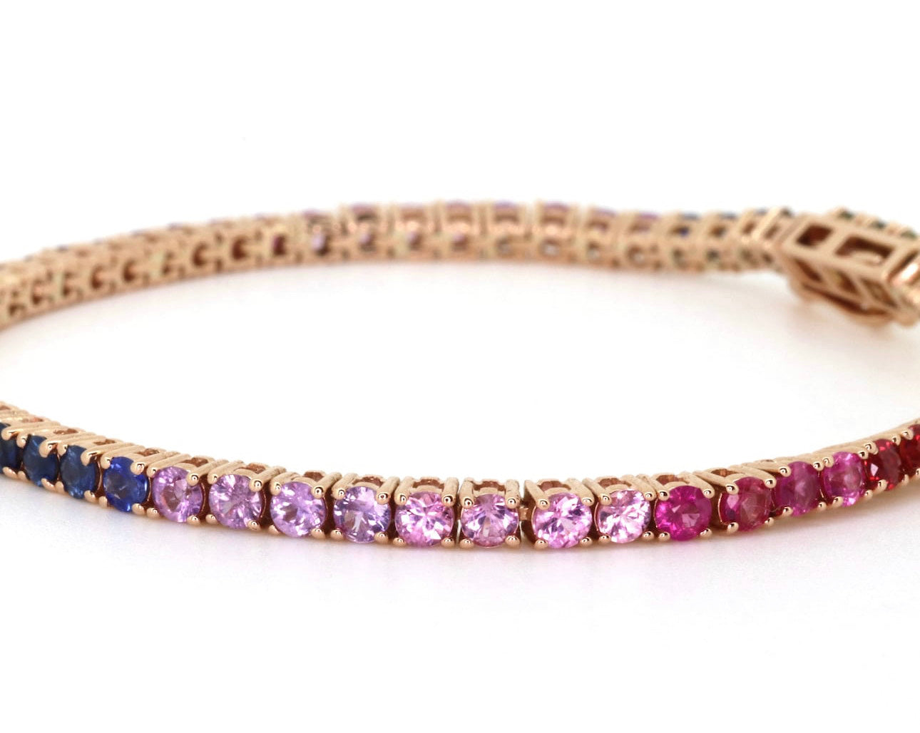 14 k Gold Tennis Bracelet with Round Natural rainbow Sapphires